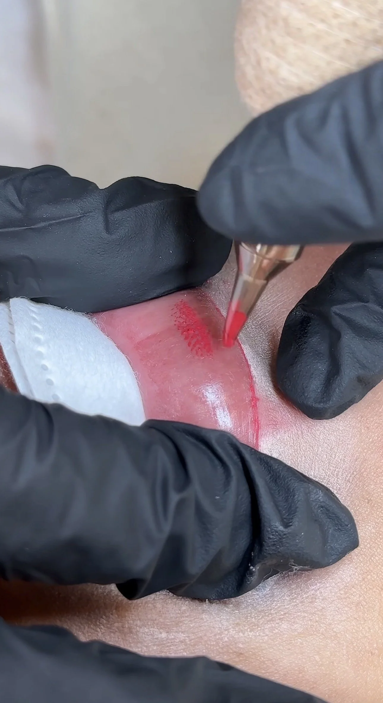 Dark lip neutralization is a cosmetic tattooing technique used to even out the natural color of lips that are dark, uneven, or pigmented, creating a more balanced base before adding color with a lip blush tattoo.